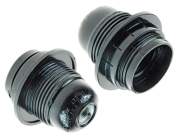 PORTA LAMPADA TIPO E27 CON UNA GHIERA, IN BACHELITE, FILETTATURA IN METALLO, NERO