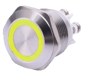 PULSANTE 19MM OFF-(ON) LED GIALLO 12V ANTIVANDALO IP65