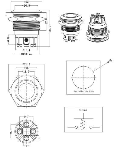Foro fissaggio: ø19mm,