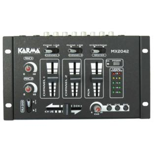 Di dimensioni estremamente contenute è in grado di gestire fino a 6 ingressi (2 phono, 2 line, 2 mic). Phono e line potranno essere assegnati a due slider mentre i microfoni dispongono di comando rotante indipendente. Due serie di led consentono di monitorare costantemente i livelli di volume. In cuffia è possibile ascoltare il risultato dell'intera miscelazione ma anche i singoli canali in preacolto. Grazie alla funzione talkover, il volume della musica verrà abbassato. Alimentatore incluso.