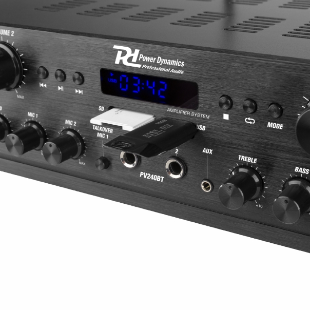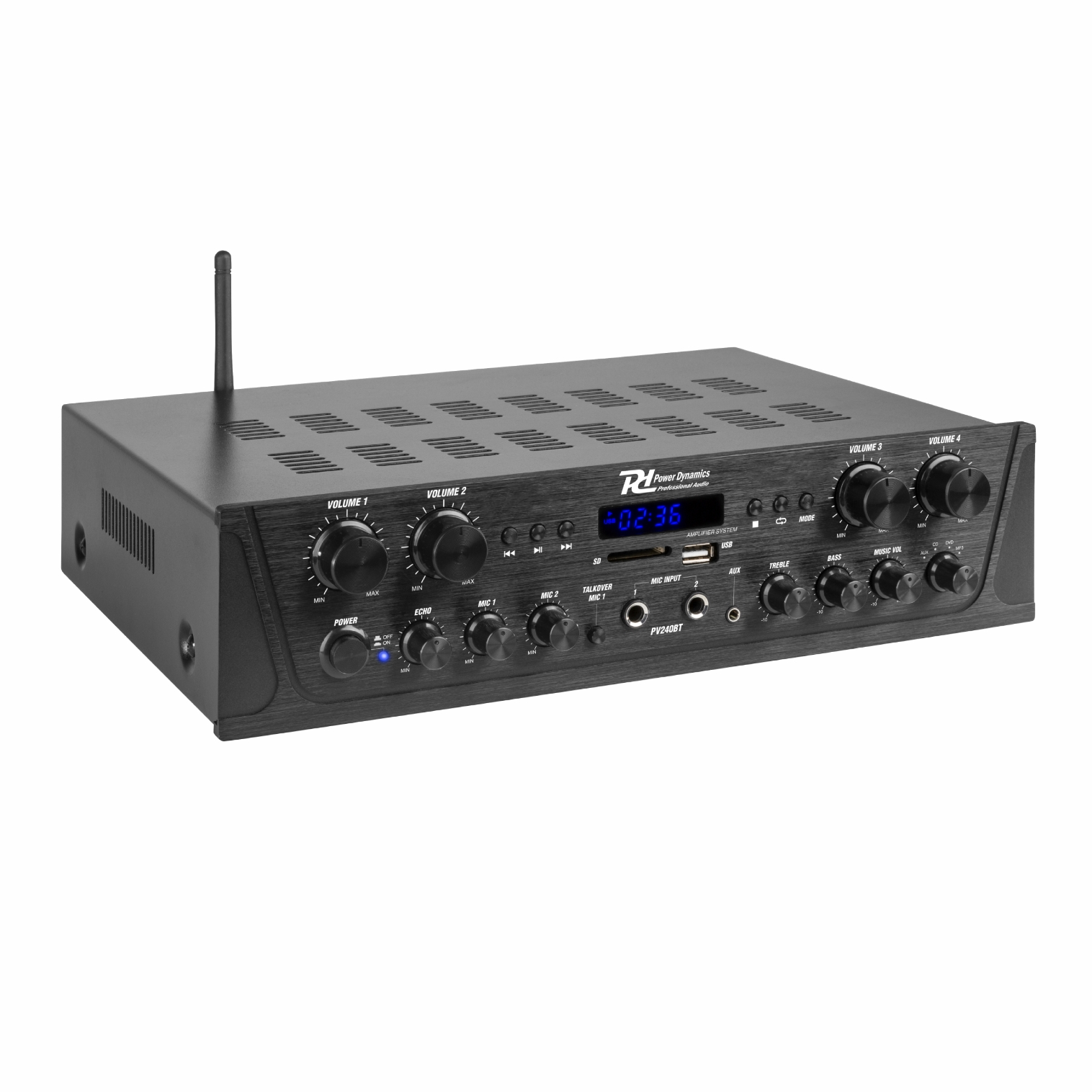 Amplificatore multicanale stereo intelligente dotato di tecnologia wireless 4.2 BT avanzata che funziona con tutti i dispositivi più recenti tra cui smartphone, tablet, laptop e computer. Questo amplificatore offre la possibilità di inviare musica o annunci a diversi canali desiderati (multiroom) con controllo del volume individuale regolabile per ognunsa delle 4 zone. Dotato di uno slot per scheda USB / SD per la riproduzione di MP3 / WMA, una radio FM con display a LED e due ingressi per microfono con controllo dei toni e dei bassi / alti. Fornito con telecomando IR.