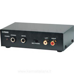 Convertitore di segnale audio. Consente di trasformare un segnale di tipo microfonico o 'phono' in segnale di 'linea'. Ad esempio, nel caso in cui vogliate collegare un microfono ad un amplificatore stereo sprovvisto di apposito connettore, questo apparecchio farebbe al caso vostro evitando di dover acquistare un mixer.