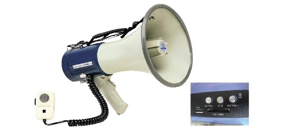MEGAFONO PROFESSIONALE 25W CON REGISTRATORE INGRESSO USB, SD, SIRENA, 600 METRI