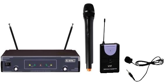 KIT RADIOMICROFONO 2 CANALI VHF (MIC. IMPUGNATURA 178,50MHz + LEVALIER 186,50MHz)