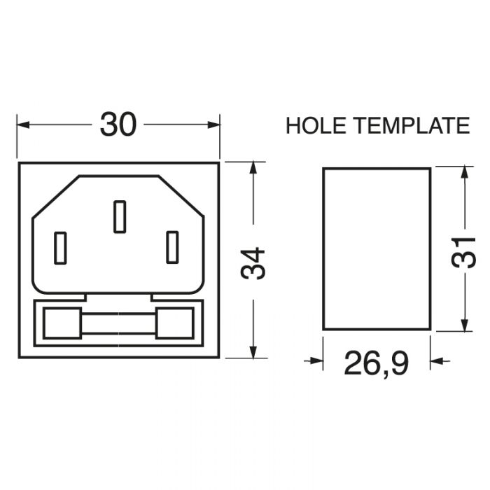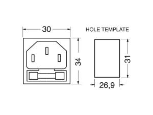 SPINA VDE C14 10A DA PANNELLO CON FUSIBILE AUTOBLOCCANTE