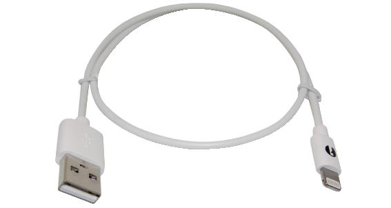 Cavo con connettore "Lightning" / USB per la ricarica / sincronizzazione dell'iPhone 5, tramite alimentatore con uscita USB o porta USB su PC/NoteBook/Mac. Chip interno ufficiale MFI, nessun problema di compatibilitą con le versioni di iOS. Colore bianco.