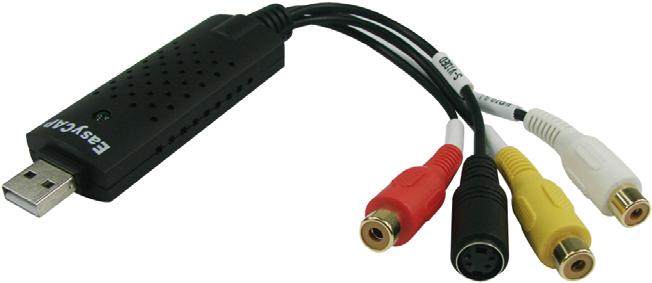 USB PER VIDEO ACQUISIZIONE Cattura video e filmati da videoregistratore VHS, DVD, televisore,video camera tramite cavo Svideo, A/V Dopo la cattura è possibile la modifica dei video e la masterizzazione direttamente su DVD tramite software a corredo Ulead Video StudioSE Supporta la conversione e il trasferimento file su diverse periferiche quali Sony PS, Ipod, Sandisk Possibilità di estrarre la parte musicale dai video Cavo input S-Video/Composite video/Audio(L/R)
