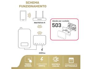 Cronotermostato Smart WI-FI con pannello soft-touch bianco retro illuminato.