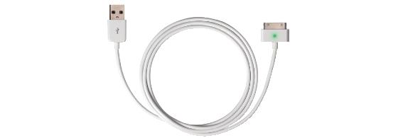 Cavetto Apple Dock / USB con LED di segnalazione carica. Il chip di controllo rileva la connessione con iPhone e iPod e accende il LED: in fase di ricarica il LED è giallo, al termine della ricarica diventa verde.