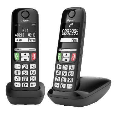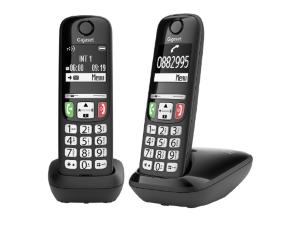 Due Gigaset E270 in un'unica confezione. Telefoni con vivavoce d'alta qualità intercomunicanti fra loro ideali per utenze senior. Tasti grandi, ben distanziati e illuminati. Audio molto alto e volume regolabile. Ampio display con caratteri e numeri grandi. Compatibile con protesi acustiche. Colore nero.