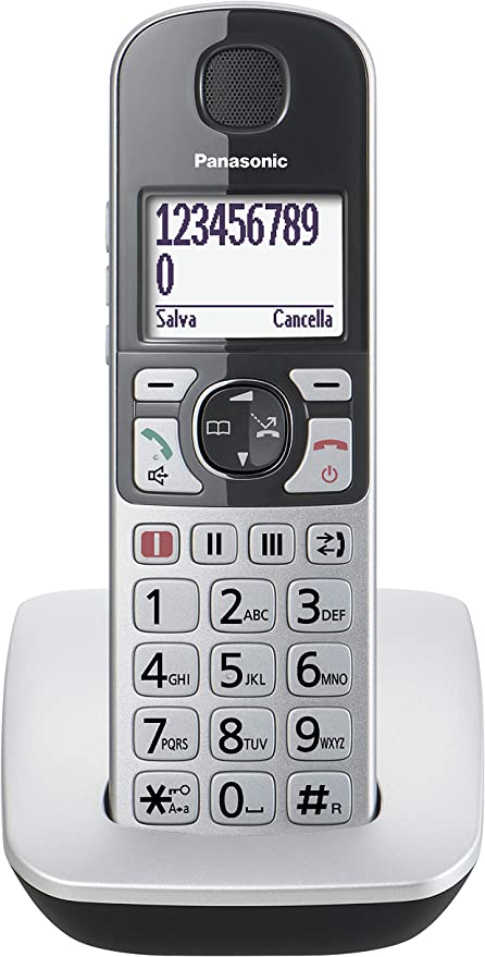 Telefono cordless Panasonic semplice e affidabile, con tasti grandi, ben illuminati e distanziati per facilitare la selezione. Display ampio da 1,8" con caratteri e numeri grossi, retroilluminato bianco con testi a contrasto per migliorare la leggibilità anche al buio